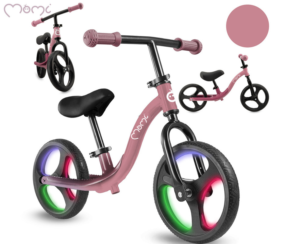 MOMI otroško kolo ISOKA 4589 izstopa s svojo edinstveno LED osvetlitvijo, ki deluje brez baterij. Ko se kolesa vrtijo, se LED luči samodejno aktivirajo, kar povečuje vidljivost in varnost otroka med vožnjo. Ta funkcija ne le da poveča privlačnost kolesa, temveč tudi zagotavlja, da je otrok opazen tudi v slabših svetlobnih pogojih. Poleg tega je kolo zasnovano tako, da omogoča enostavno prilagoditev višine sedeža in krmila brez uporabe orodja, kar omogoča hitro prilagajanje glede na otrokove potrebe.