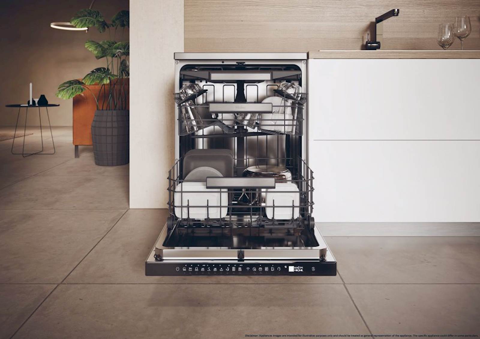 Ta pomivalni stroj je opremljen z intuitivnim DotMatrix zaslonom, ki vam omogoča enostavno upravljanje in nadzor nad cikli pomivanja. Prikazuje vse potrebne informacije, kot so Eco indeks, poraba vode, temperatura in čas, kar vam omogoča zavestno izkušnjo pomivanja. Z aplikacijo hOn lahko izberete funkcijo Washing Lens, ki samodejno prilagodi cikel pomivanja glede na vrsto in razporeditev posode, kar zagotavlja najboljše rezultate tudi za občutljive steklene kose.