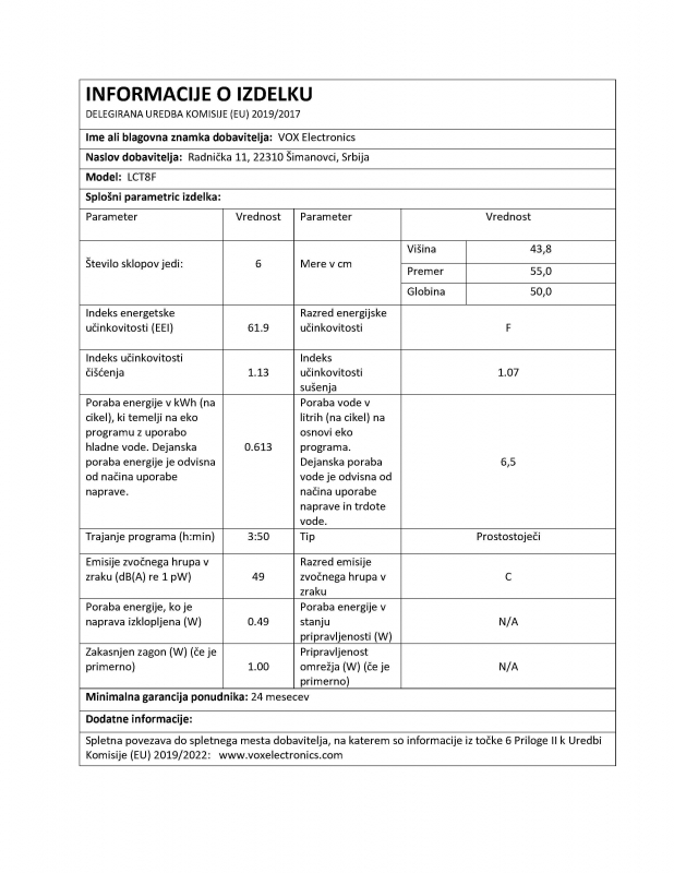 Namizni pomivalni stroj VOX LC T8 F 55 cm - Namizni pomivalni stroj VOX LC T8 F 55 cm - ecom
