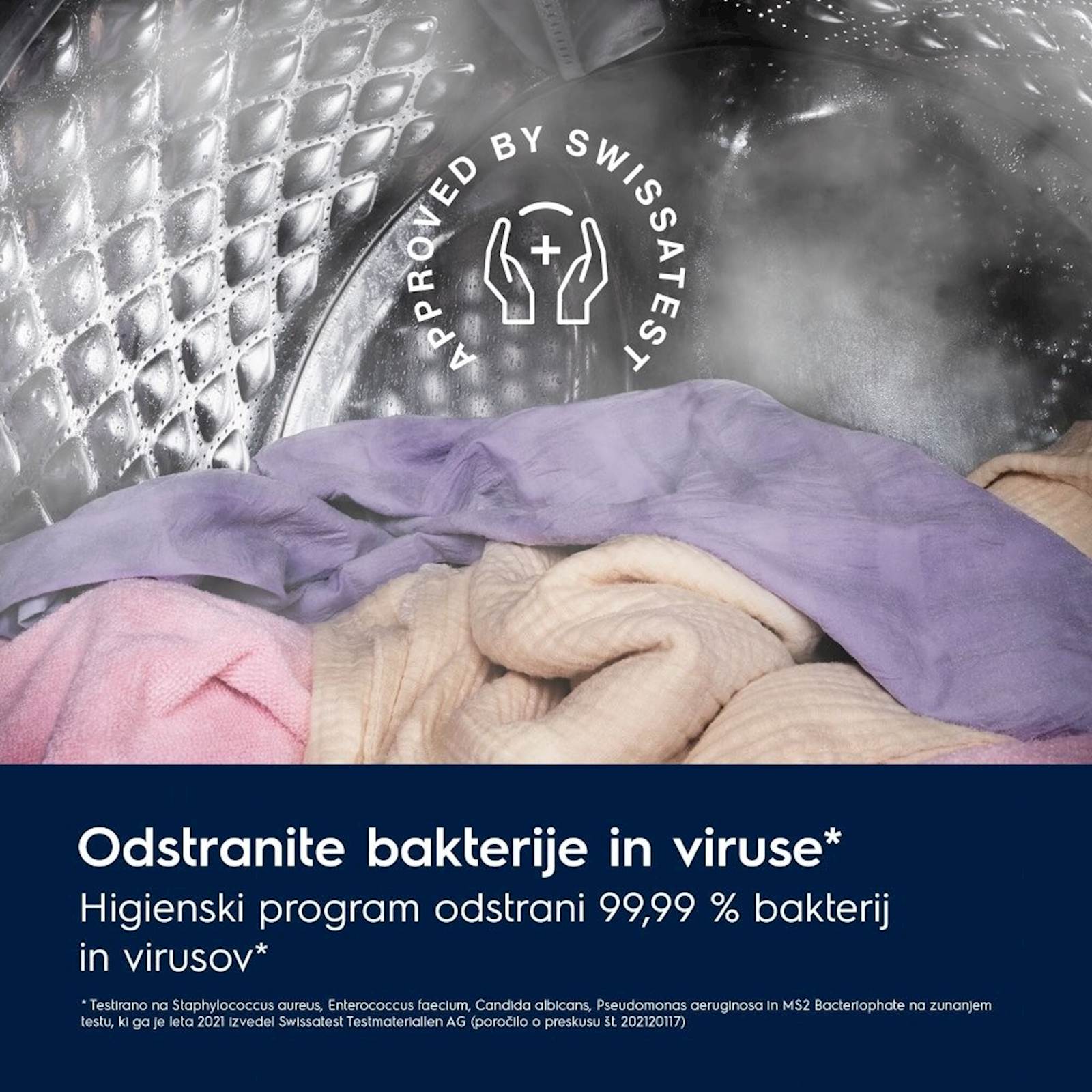 Pralni stroj Electrolux EW6F9492E vključuje program Steam Hygiene, ki združuje pralni in parni cikel za odstranjevanje več kot 99,99 % bakterij in virusov. Ta funkcija je idealna za tiste, ki želijo zagotoviti dodatno higieno svojim oblačilom, še posebej v času prehladov in gripe. Program deluje pri temperaturah nad 60 °C, kar zmanjšuje prisotnost alergenov in cvetnega prahu ter zagotavlja, da so oblačila po vsakem pranju temeljito očiščena. Ta inovativna funkcija je certificirana s strani Swissatest, kar potrjuje njeno učinkovitost.