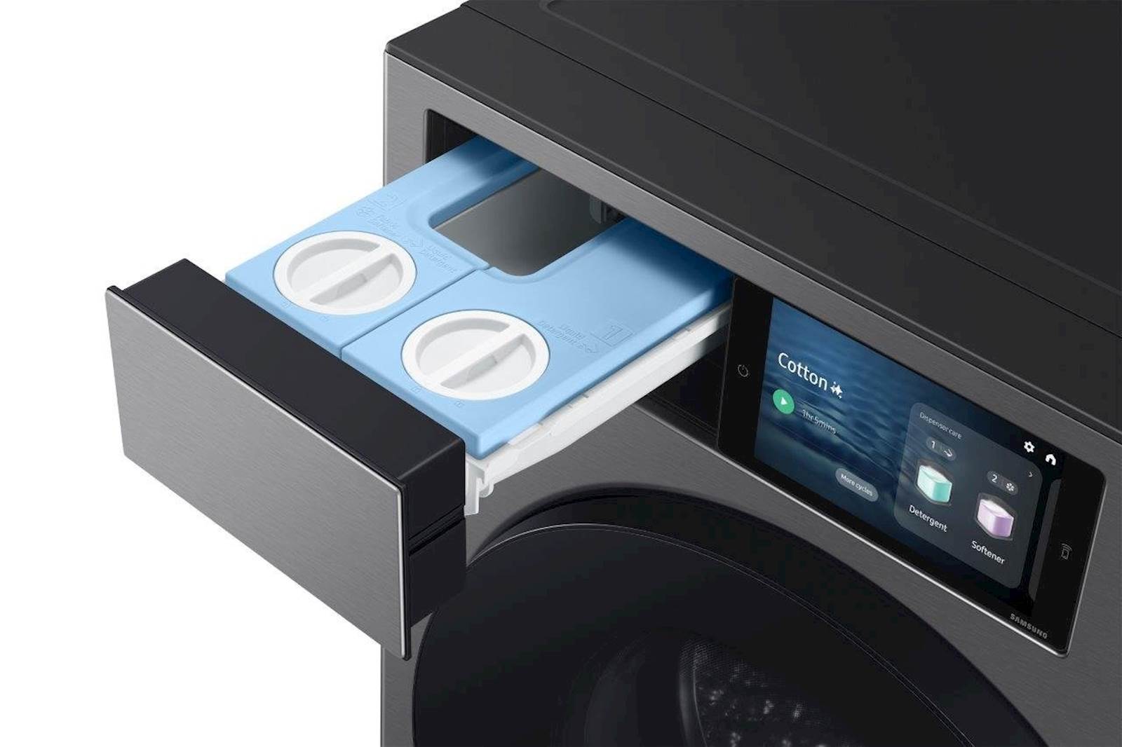 Pralni stroj Samsung WF90F09C4SU4 je opremljen z naprednimi pametnimi funkcijami, ki olajšajo vsakodnevno pranje. S tehnologijo AI Wash se količina vode, detergenta in čas pranja samodejno prilagajajo glede na težo in umazanost perila, kar zagotavlja optimalne rezultate. Poleg tega funkcija Auto Dispense poskrbi za samodejno doziranje pralnih sredstev, kar dodatno povečuje učinkovitost pranja. Upravljanje preko aplikacije SmartThings omogoča enostavno daljinsko upravljanje in optimizacijo porabe energije, kar je idealno za sodobne domove.