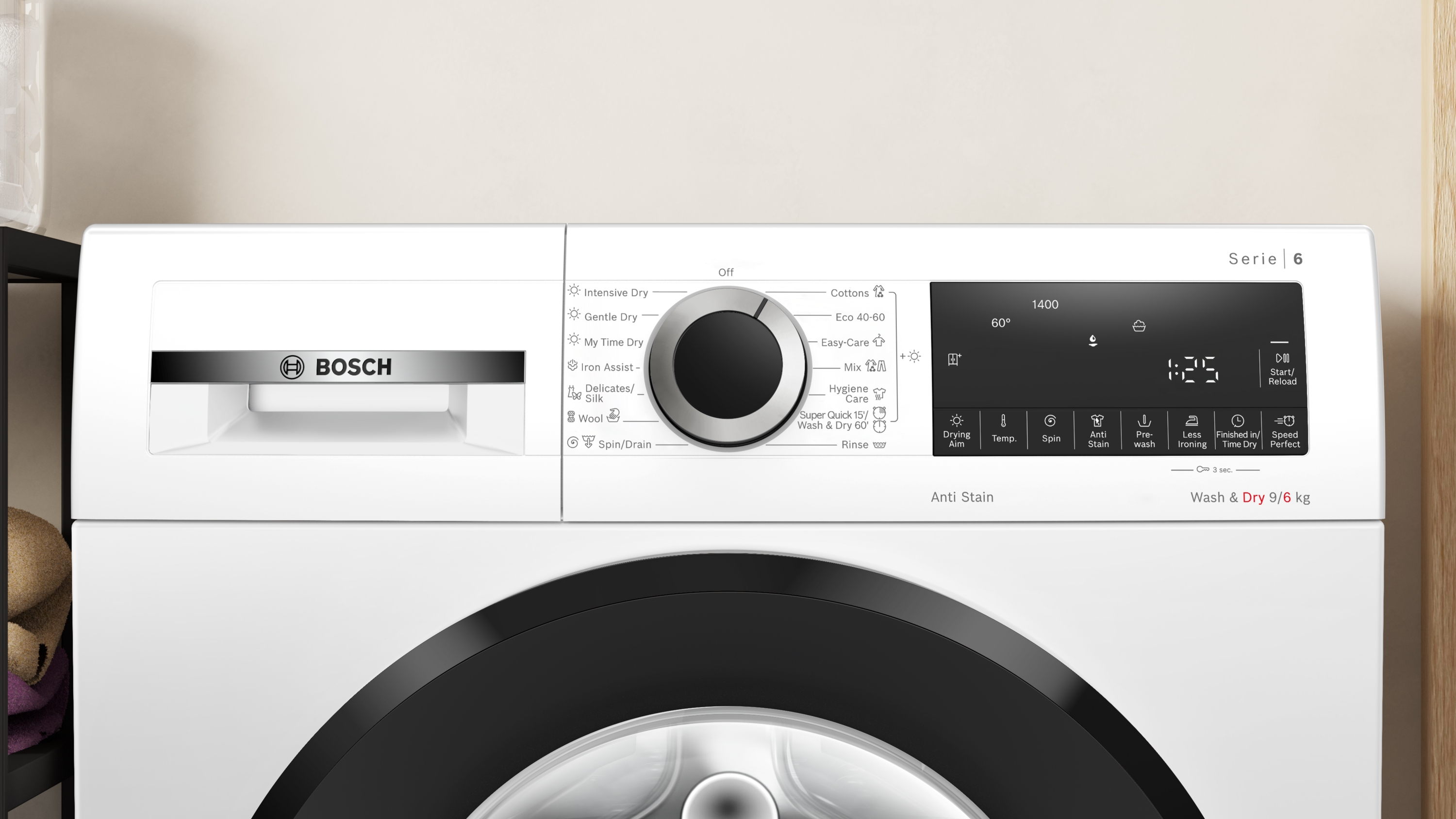 Pralno-sušilni stroj Bosch WNG24401BY je opremljen z naprednim EcoSilence Drive motorjem, ki omogoča tiho in učinkovito delovanje. Ta motor je zasnovan za dolgo življenjsko dobo in zmanjšanje hrupa med pranjem in sušenjem. Poleg tega stroj ponuja funkcijo SpeedPerfect, ki omogoča popolnoma čisto perilo v do 65% krajšem času, kar je idealno za tiste, ki imajo omejen čas. Zmogljivost pranja do 9 kg in sušenja do 6 kg omogoča, da perete in sušite večje količine perila naenkrat, kar je praktično za večje družine.