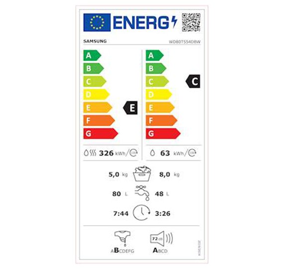 - Razred energijske učinkovitosti pranja in sušenja e