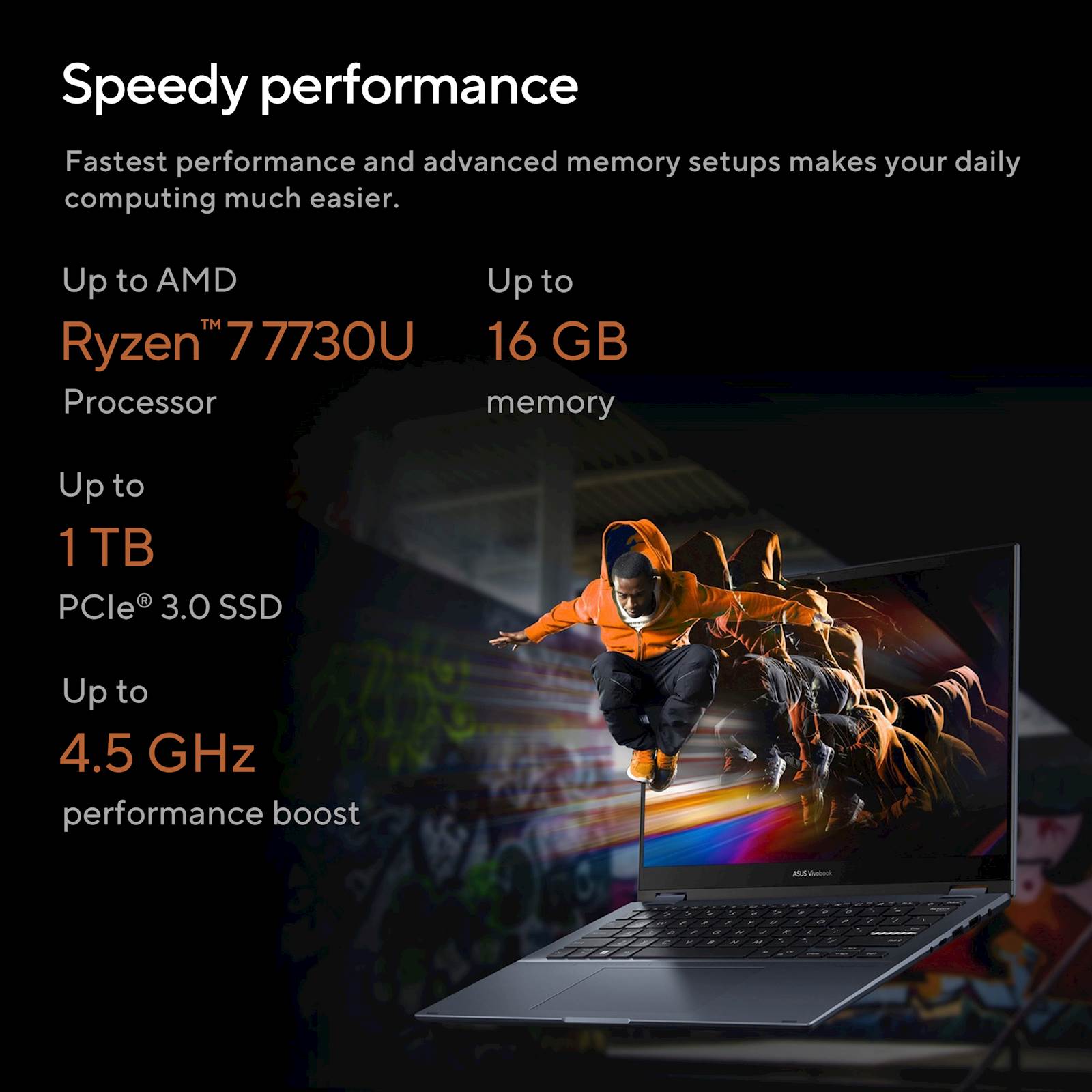 Vivobook S 14 Flip OLED je opremljen z najnovejšim procesorjem AMD Ryzen 7, ki zagotavlja izjemno zmogljivost in hitrost. Ta prenosnik je zasnovan za premagovanje vsakodnevnih nalog z lahkoto, saj omogoča hitro in učinkovito obdelavo podatkov. Integrirana AMD Radeon Graphics kartica poskrbi za gladko grafično izkušnjo, kar je idealno za igranje iger ali obdelavo grafično zahtevnih aplikacij. S 16 GB pomnilnika lahko brez težav izvajate več nalog hkrati, kar povečuje vašo produktivnost.
