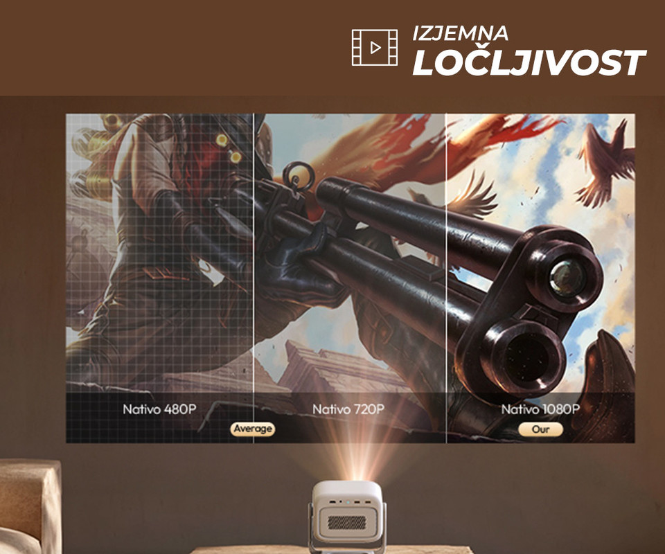 - Dimenzije (projektor): 180 x 150 x 190 mm