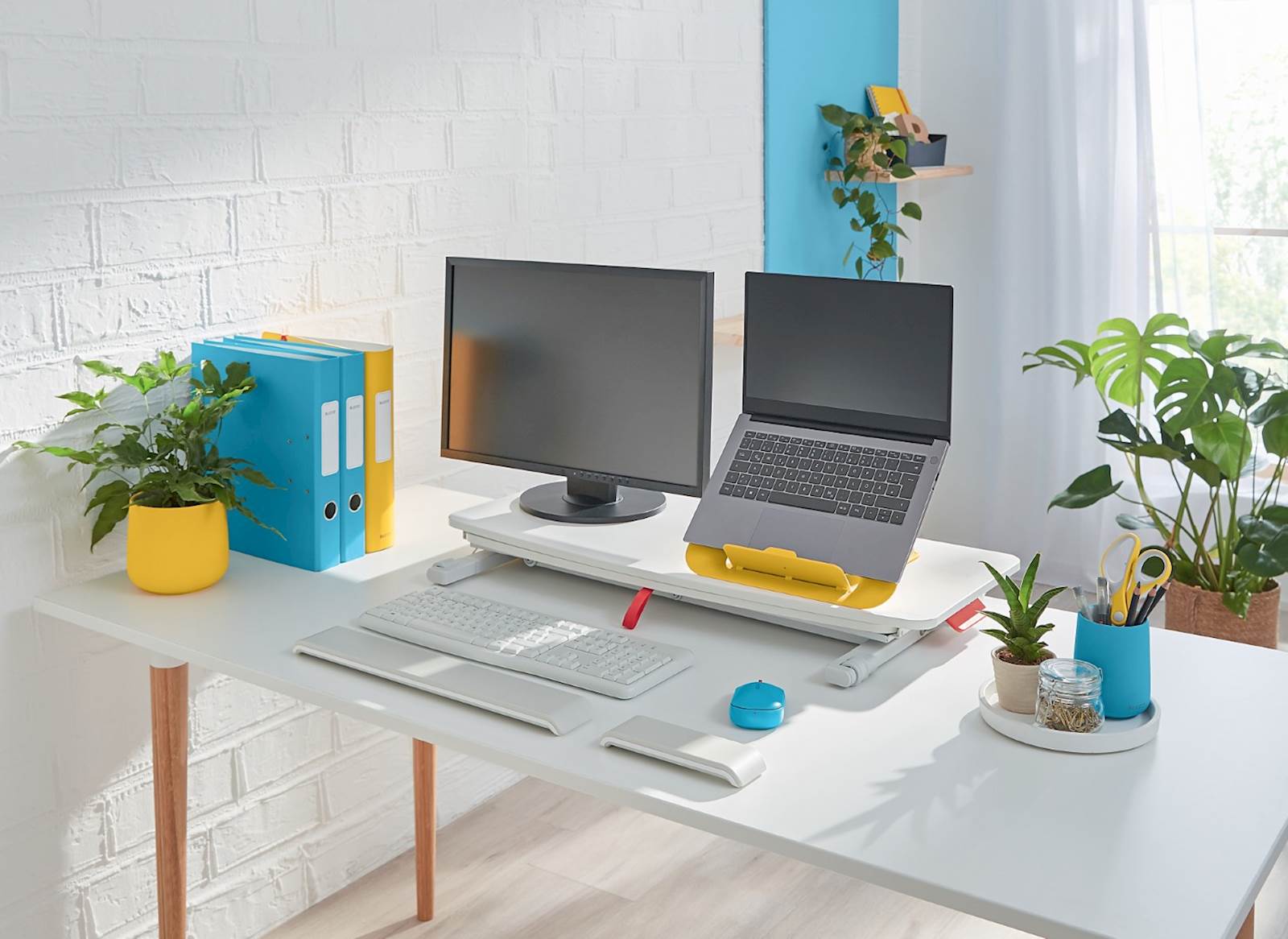 Leitz dvižno stojalo ergo cosy L-65320085 je zasnovano za tiste, ki želijo izboljšati svoje delovno okolje z ergonomskim pristopom. Njegov prožen nastavljiv mehanizem omogoča gladko preklapljanje med sedečim in stoječim položajem, kar prispeva k večji produktivnosti in udobju med delom. Glavna površina podpira do 16 kg teže, medtem ko drsni pladenj podpira težo do 8 kg, kar omogoča varno namestitev vaše opreme. Embalaža brez plastike in popolnoma sestavljen izdelek zagotavljata enostavno postavitev in uporabo.