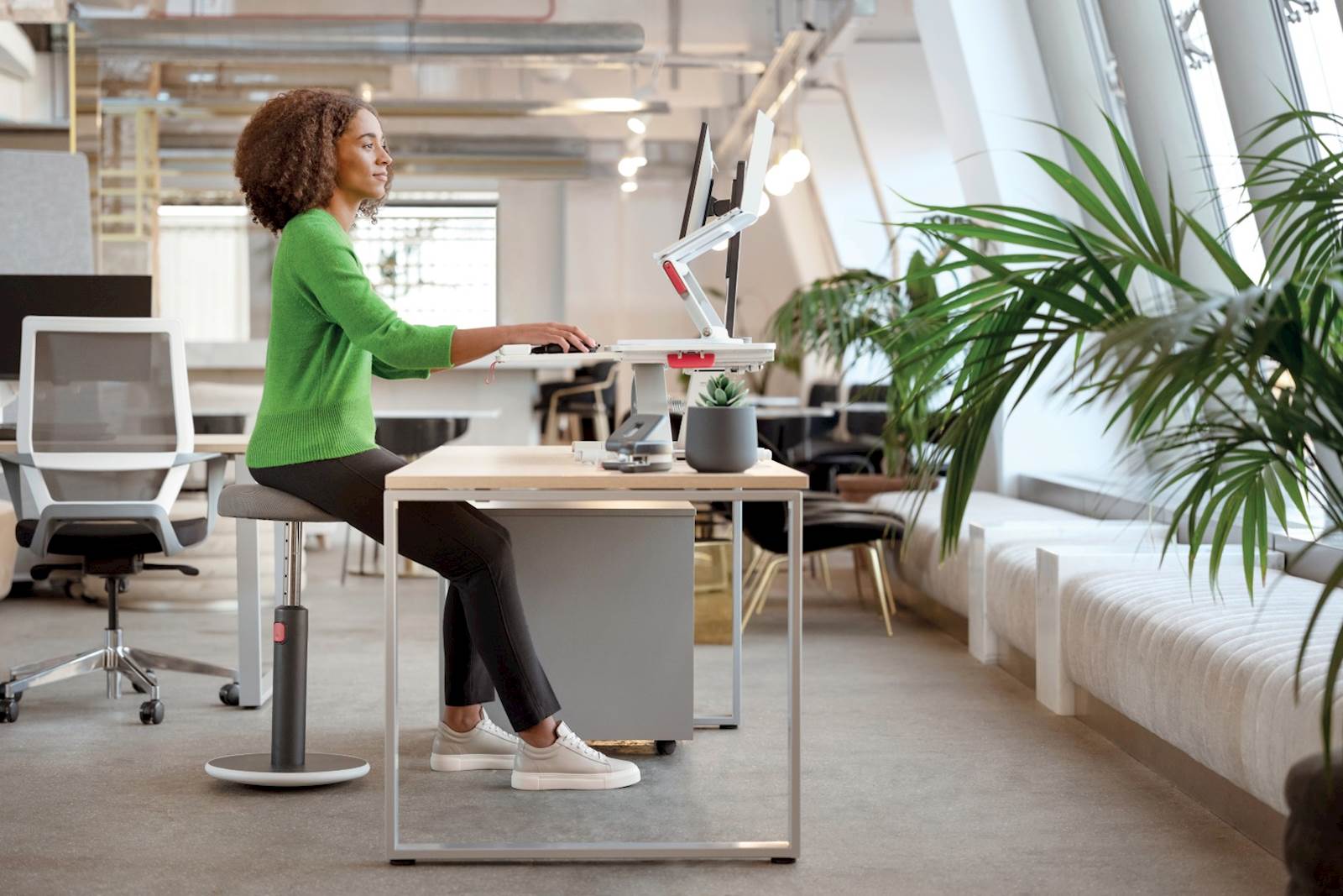 Leitz dvižno stojalo ergo cosy L-65330085 omogoča gladko in enostavno preklapljanje med sedečim in stoječim položajem, kar prispeva k bolj zdravemu in aktivnemu delovnemu dnevu. Z najnižjo višino 48 mm in najvišjo višino 310 mm lahko prilagodite stojalo svojim potrebam. Ta prilagodljivost vam omogoča, da se ves dan premikate in tako zmanjšate tveganje za težave, povezane s sedenjem. Kombinirajte to stojalo z drugimi izdelki Leitz Ergo za ustvarjanje popolnega delovnega prostora, ki spodbuja gibanje in produktivnost.