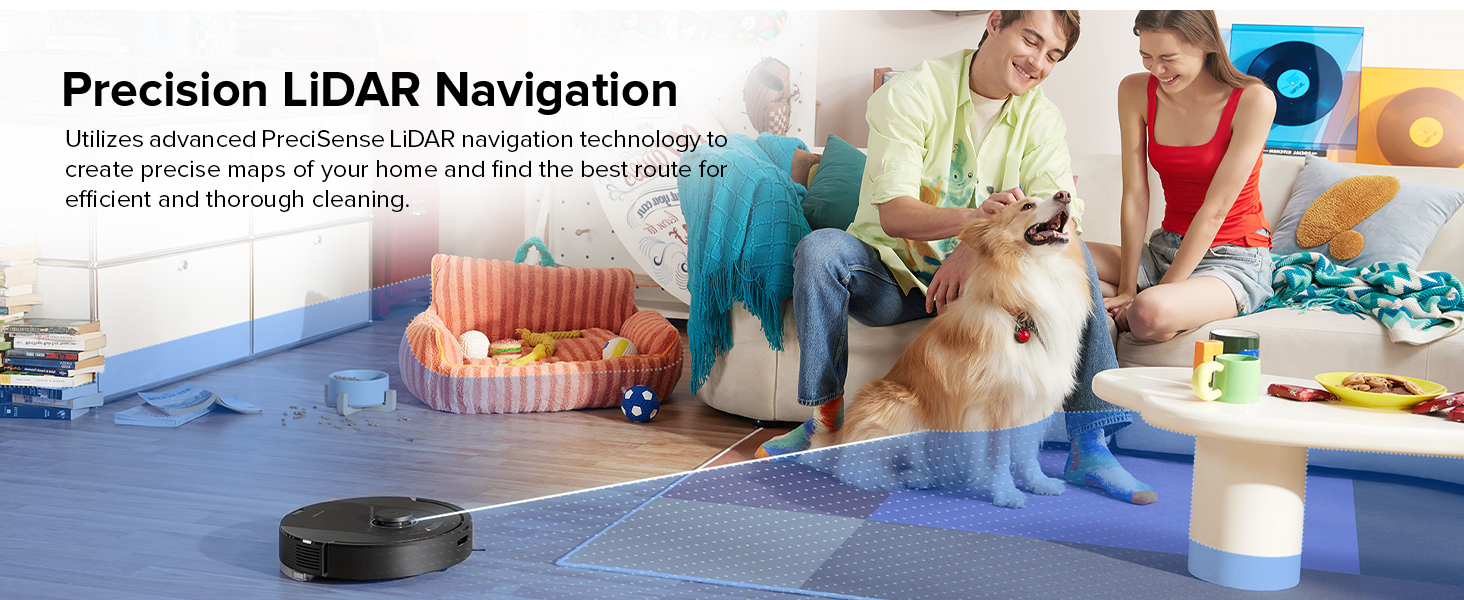 Precision LiDAR navigacija Za ustvarjanje natančnih zemljevidov vašega doma uporablja napredno tehnologijo za navigacijo Lidar, poiščite najboljšo pot za učinkovito in temeljito čiščenje.