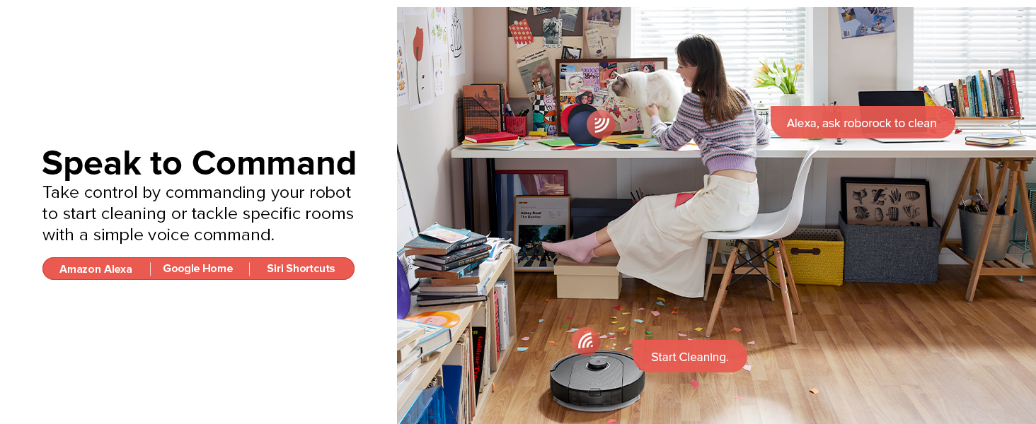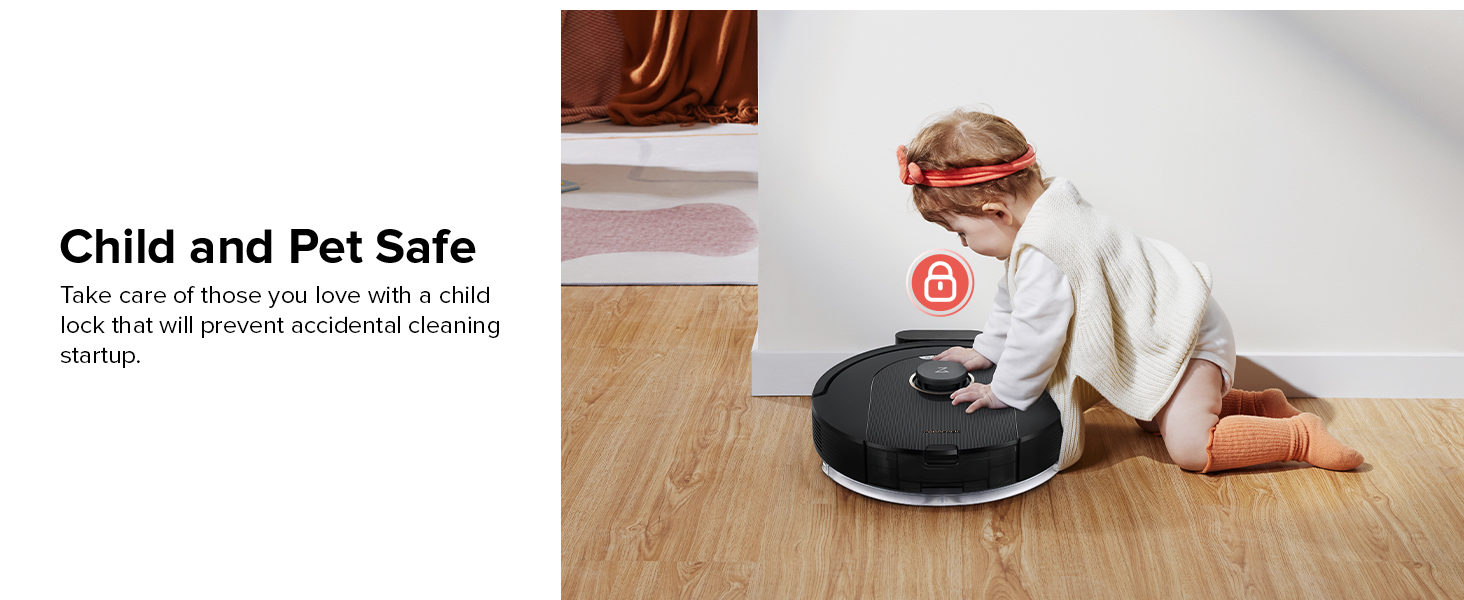 Glasovno upravljanje Prevzemite nadzor tako, da začnete s čiščenjem ali se lotevati določenih prostorov s preprostim glasovnim ukazom. Otroška zaščita in zaščita pred hišnimi ljubljenčki Poskrbite za tiste, ki jih imate radi, z otroško zaščito, ki bo preprečila nenamerno čiščenje.