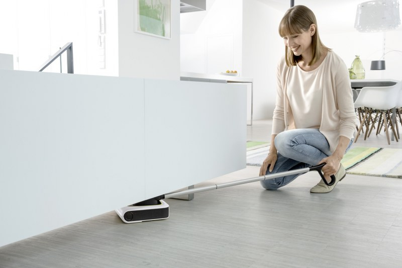 Zanesljivo odstrani umazanijo z vseh talnih oblog. Inovativni mobilni kotnik z metlo, ki skrbi za optimalno pobiranje umazanije. Izboljšana notranja geometrija z optimalnim vodenjem umazanije, katere namen je varno odstranjevanje umazanije. Enostavna demontaža in montaža posode za smeti Hitro in preprosto praznjenje brez stika z umazanijo Fleksibilen dvojen zgib Držalo se zlahka premika v vseh smereh. Preprosto manevriranje. Tudi med pohištvom in stoli. Samodejen vklop/izklop Pripogibanje ni več potrebno. Večnamenska krtača Popolnoma pobere umazanijo s trdih talnih oblog in tudi preprog. Preprosto odstranjevanje dlak. Omogoča pometanje vzdolž robov. Preprosto snemanje in vstavljanje večnamenske krtače Hitro in enostavno z eno roko. Lajša čiščenje večnamenske krtače. Tehnologija litij-ionskih baterij Z življenjsko dobo baterije do 30 minut za trde talne obloge. Brez spominskega učinka. Možnost uporabe v vsakem trenutku. Odlaganje, ki zavzema malo prostora Za preprosto odlaganje, ki zavzema malo prostora, lahko tudi v manjše niše. Baterijska metla je natanko tam, kjer jo potrebujete. Odlagalno mesto Napravo lahko med krajšimi premori med delom udobno odložite v prostoru. Majhna teža Enostaven transport in usmerjanje.