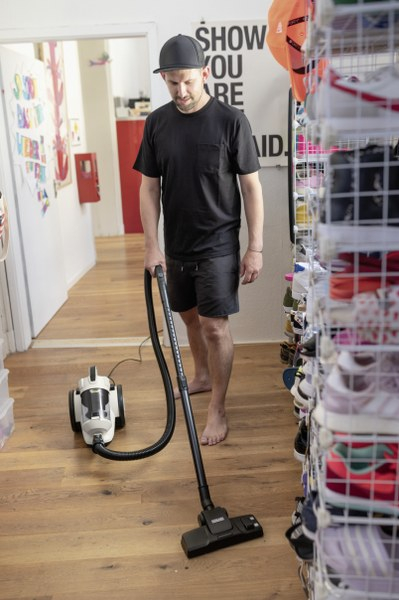 S kompaktnim sesalnikom VC 3 multiciklonske tehnologije boste sesali popolnoma brez filtrskih vrečk. Tako boste prihranili na času in denarju, saj ne boste morali menjati in kupovati dcenovno visoke filtrskih vrečke. Poleg tega njegova prozorna posoda za umazanijo daje že na prvi pogled vedeti, kdaj jo je treba izprazniti. Zaradi sistema, v katerem vrečke niso potrebne, tudi ne prihaja do neprijetnih vonjav, kar veseli tudi druge in ne samo osebe, ki so alergične. S svojo kompaktno velikostjo VC 3 je idealen za različne namene v stanovanjih in manjših hišah. Razen trdih talnih oblog in tepihov s svojo šobo za fuge in čopiča za pohištvo temeljito počisti tudi ozke vmesne prostore in občutljive površine. Ostale lastnosti v zvezi z opremo sesalnika so vgrajeni Hepa higienski filter, ki zanesljivo filtrira najbolj drobne delce umazanije kot je cvetni prah in drugi delci, ki povzročajo alergije, in tudi praktično shranjevanje.
