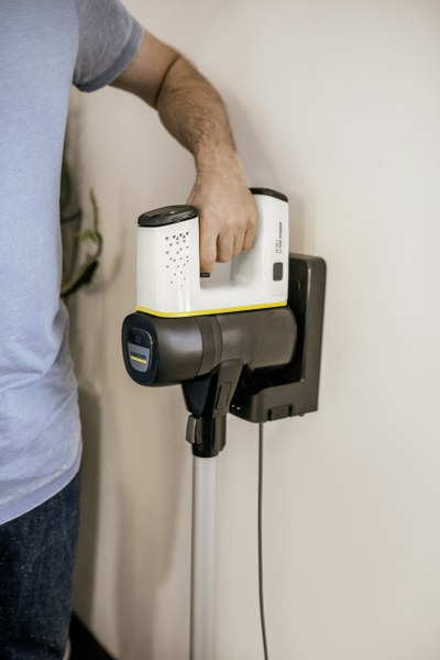 - Priročen polnilni sistem s preprostim obešanjem sesalnika na nosilec.