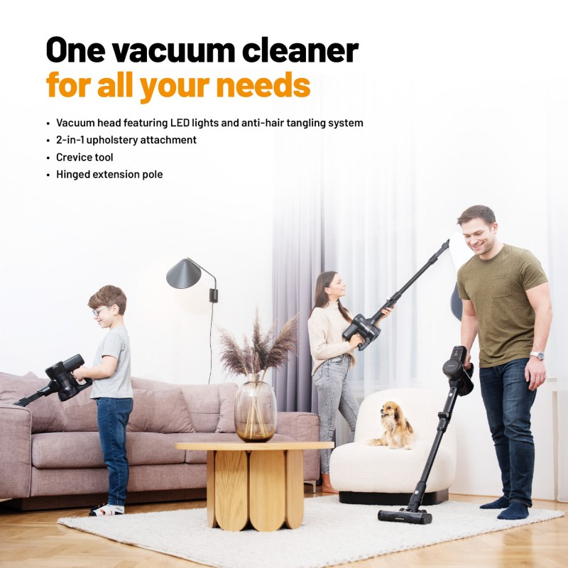 Brezžična zasnova sesalnika Lauben omogoča svobodno gibanje in uporabo kjerkoli v vašem domu. Ni vam več treba skrbeti za dolžino kabla ali iskanje najbližje vtičnice. Sesalnik je lahek in enostaven za rokovanje, saj tehta le 1,5 kg. Njegova fleksibilna palica z zgibom omogoča dostop do težko dosegljivih mest, kot so prostori pod pohištvom ali v ozkih kotih. Poleg tega ima sesalnik univerzalno motorizirano krtačo, ki je primerna za vse vrste tal, vključno s preprogami in trdimi podlagami.