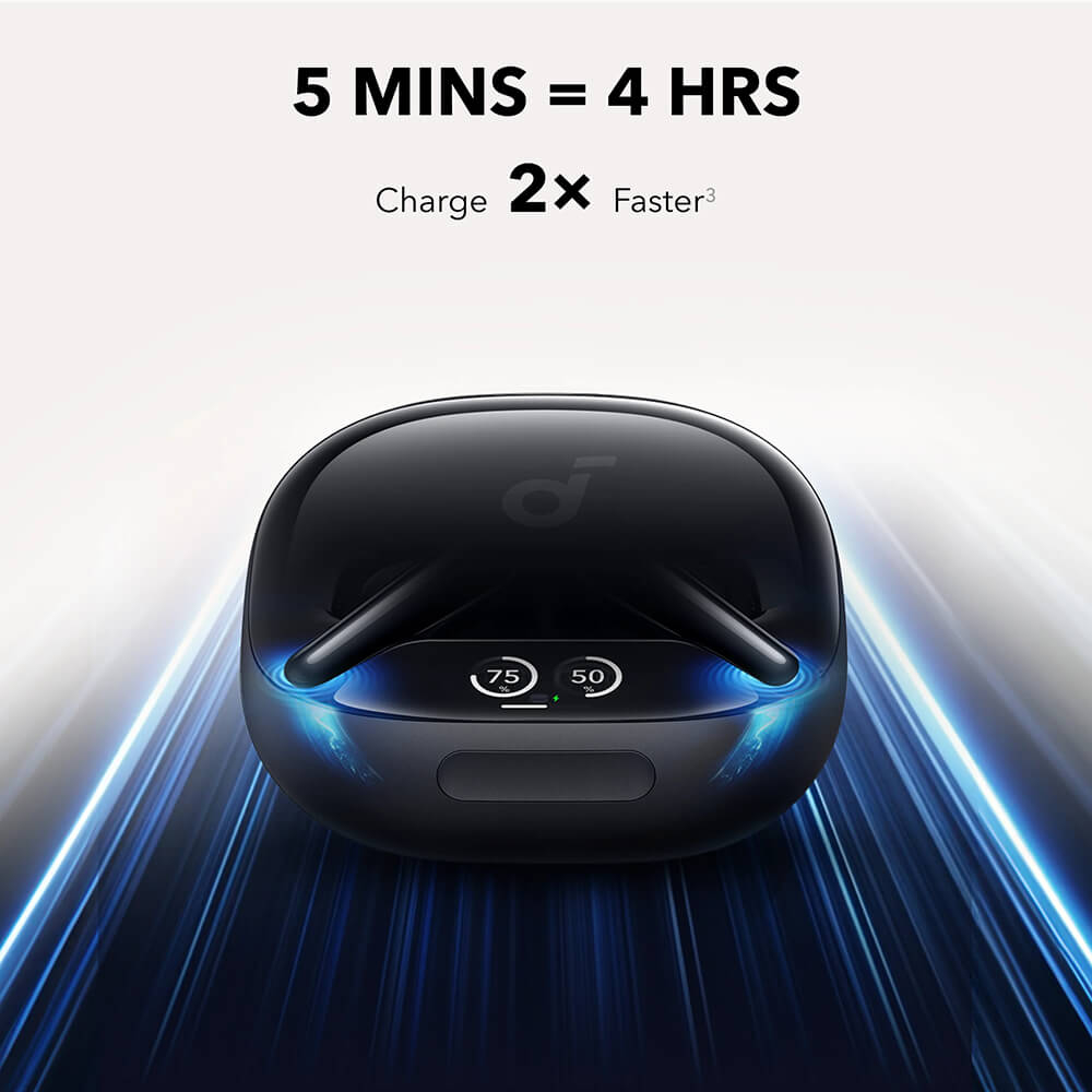 Anker soundcore liberty 4 pro slušalke se ponašajo z izjemno hitrim polnjenjem, ki vam omogoča, da uživate v glasbi brez dolgotrajnega čakanja. S pomočjo 5C baterije se slušalke polnijo 2-krat hitreje kot prejšnji modeli. Pet minut polnjenja omogoča 4 ure poslušanja, kar je idealno za tiste, ki so vedno na poti. Uživajte do 10 ur med polnjenji, ki se z etuijem podaljšajo na 40 ur. Ne glede na to, ali ste na dolgem potovanju ali v vsakdanjem življenju, vam te slušalke omogočajo, da ostanete povezani z vašo najljubšo glasbo.