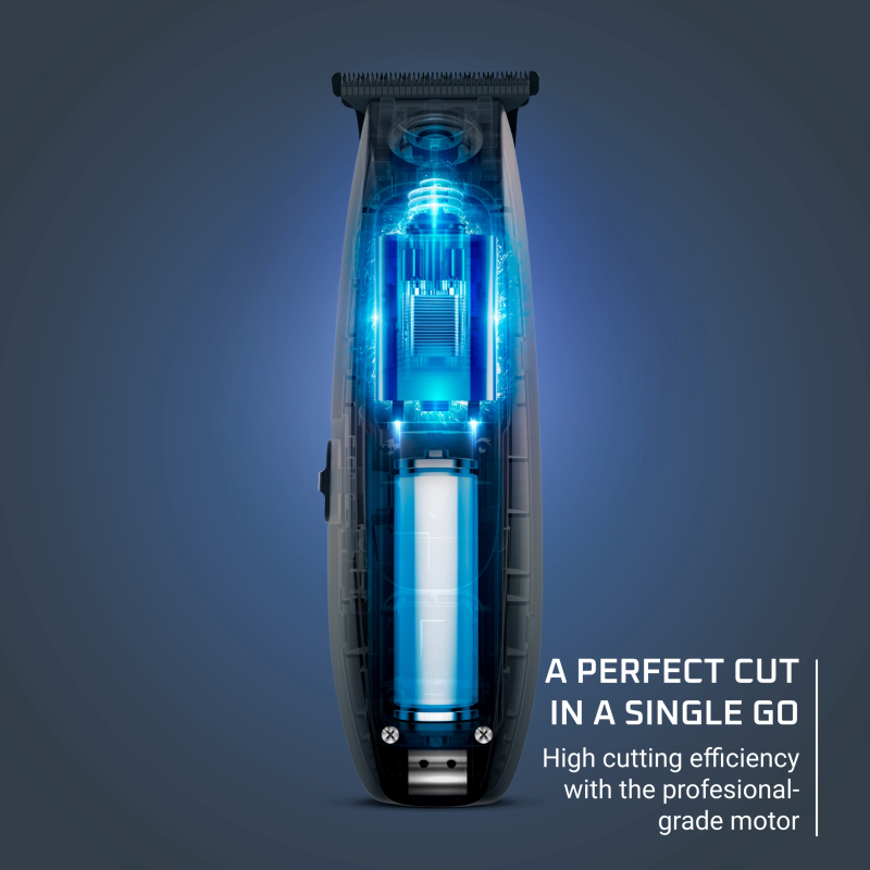 Naš prirezovalnik je opremljen z rezili, ki imajo prevleko iz ogljika v obliki diamanta, kar zagotavlja vrhunsko zmogljivost striženja na profesionalni ravni. Tehnologija samoostrilnih rezil zagotavlja dolgotrajno učinkovitost striženja, kar pomeni, da boste vedno dosegli popoln rez. Poleg tega, prirezovalnik omogoča podrobno urejanje z uporabo petih fiksnih glavnikov, ki se prilagodijo vašemu osebnemu stilu. Zanesljiv motor profesionalnega razreda vedno znova zagotavlja visoko učinkovitost rezanja, kar pomeni, da boste vedno dosegli popolne rezultate.