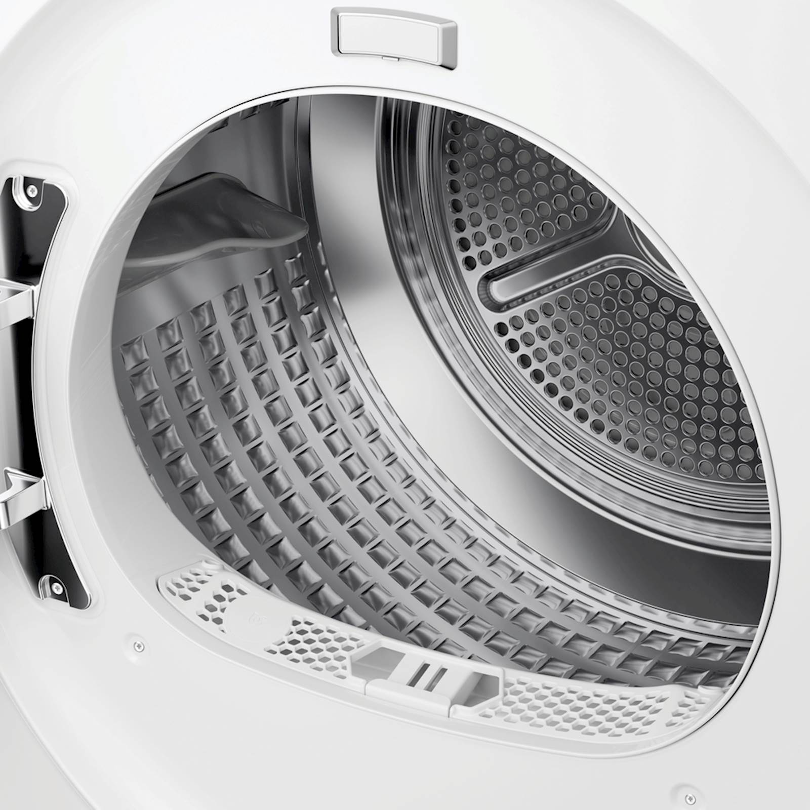 Ta sušilni stroj je zasnovan z mislijo na varčnost in učinkovitost. Toplotna črpalka omogoča sušenje pri nižjih temperaturah, kar ne le da varčuje z energijo, ampak tudi podaljšuje življenjsko dobo vaših oblačil. S porabo energije le 137 kWh na 100 ciklov je ta stroj odlična izbira za okoljsko ozaveščene uporabnike. Poleg tega, tehnologija AI Smart Move zagotavlja, da se boben vrti v obe smeri, kar prispeva k enakomernemu sušenju in zmanjšuje možnost poškodb tkanin.