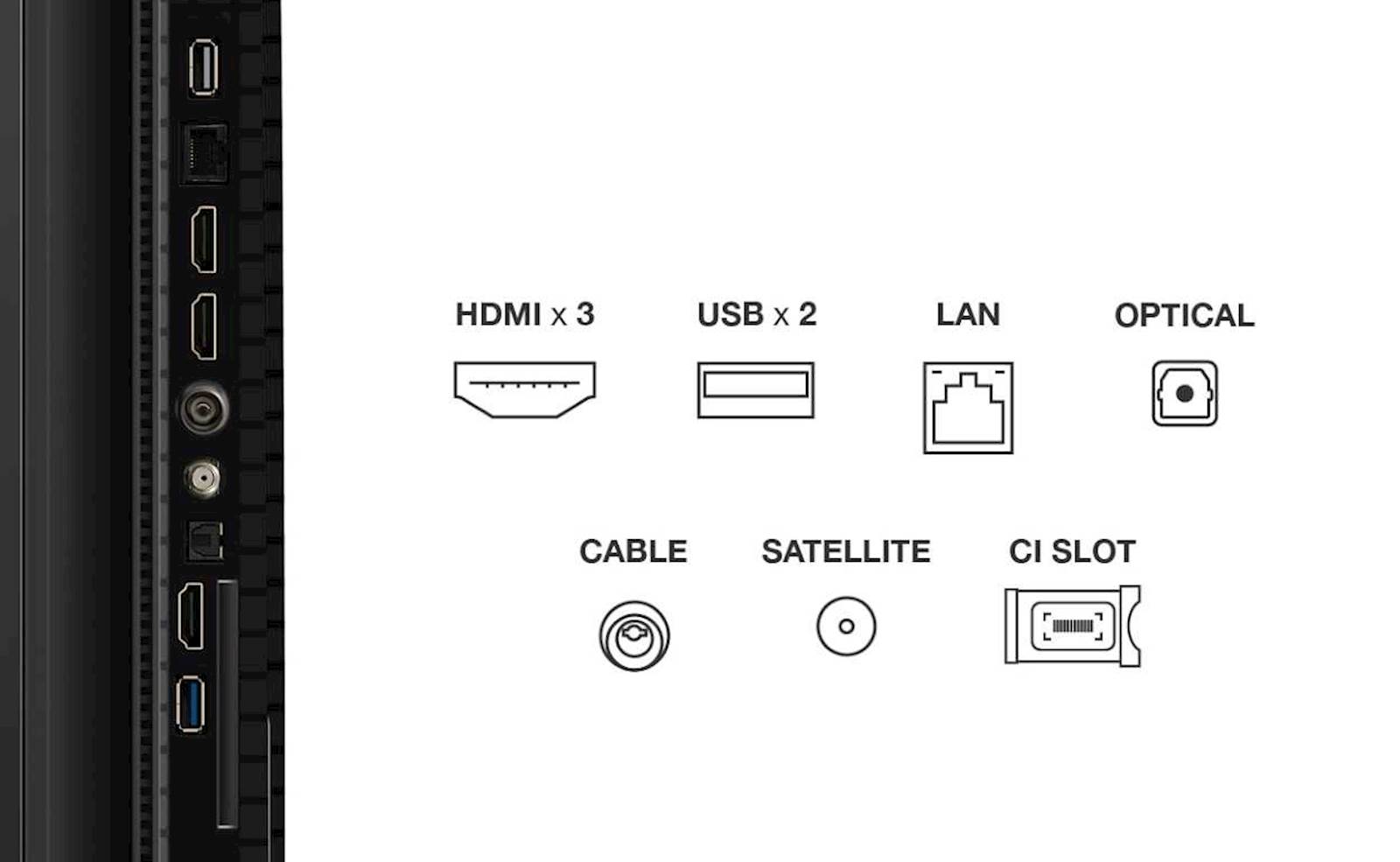 - Priključki: 2 x USB, 3 x HDMI HDMI 2.1, eARC, digital audio out, LAN, CI+