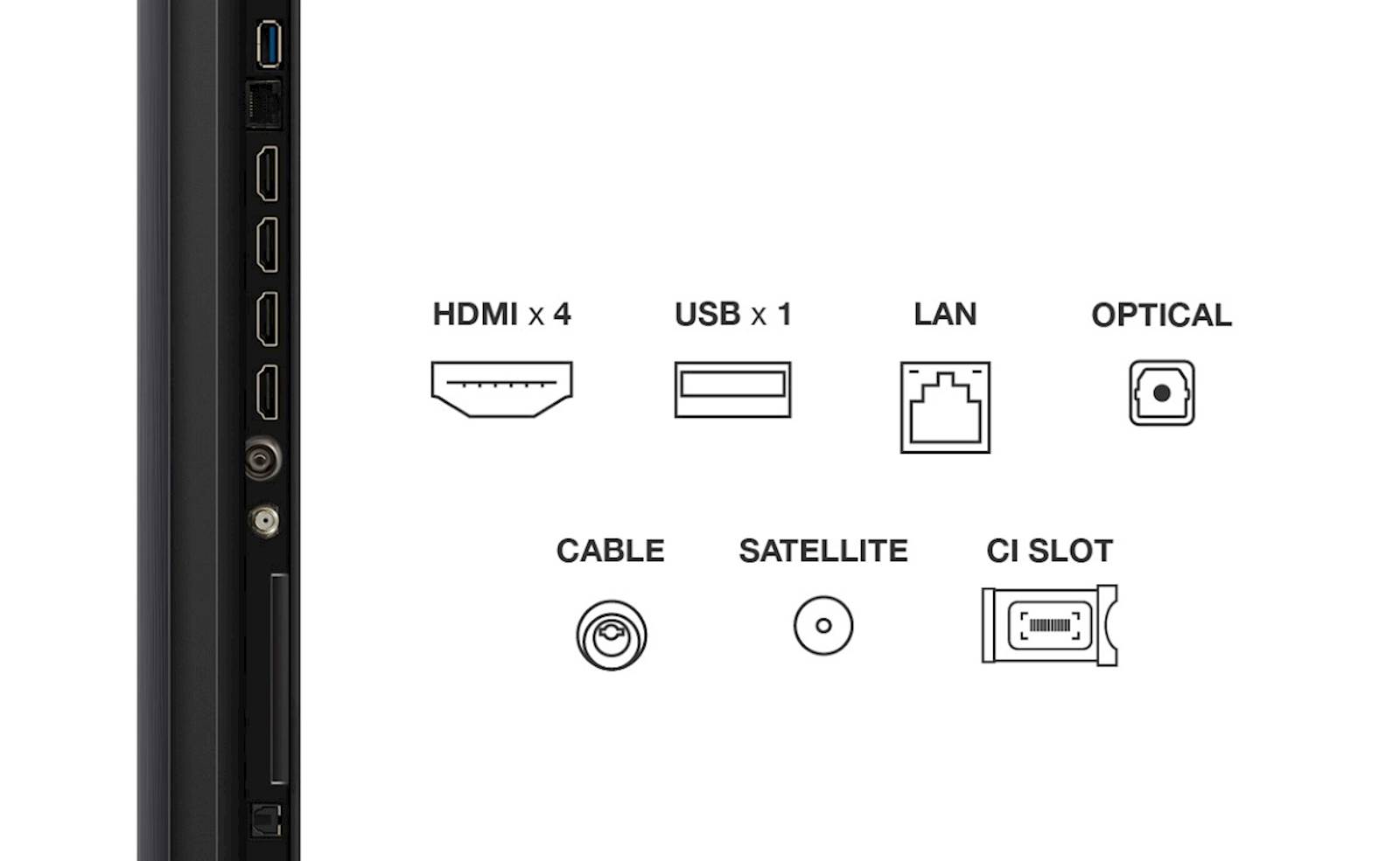 - Priključki: 1 x USB 3.0, 4 x HDMI 2.1 eARC/ARC