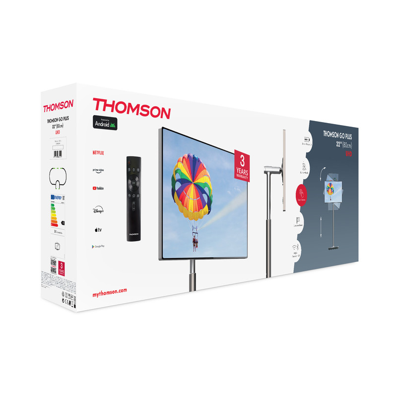 4K TV Thomson 32UE5M45E 32" je zasnovan z mislijo na uporabnika, saj ponuja izjemno prilagodljivost in mobilnost. Z integriranim vrtljivim stojalom na kolesih lahko televizor enostavno premikate po prostoru, kar vam omogoča, da vedno najdete popoln kot gledanja. Poleg tega je televizor opremljen z nastavljivim nagibom, višino in vrtenjem, kar zagotavlja optimalno udobje med gledanjem. Ne glede na to, kje ga postavite, bo ta televizor vedno zagotavljal najboljšo možno izkušnjo gledanja.