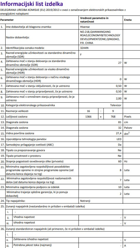 HD TV Hisense omogoča enostavno povezovanje z različnimi napravami prek HDMI, USB in Wi-Fi vhodov. Funkcija Share-to-TV omogoča hitro in enostavno deljenje vsebin z vaših naprav neposredno na televizor, kar vam omogoča brezhibno izkušnjo gledanja. Z možnostjo stenske montaže in energijskim razredom SDR F, je ta televizor popoln dodatek za vsak dom. Ne glede na to, ali želite gledati filme, igrati igre ali preprosto uživati v televizijskem programu, vam naš televizor ponuja vse, kar potrebujete za vrhunsko izkušnjo.