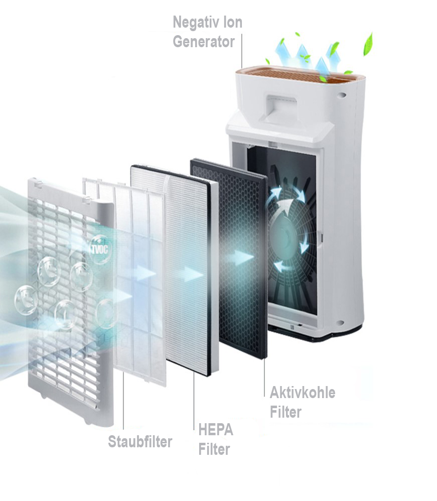 Čistilec zraka je opremljen s filtri z aktivnim ogljem, ki učinkovito odstranjujejo neprijetne vonjave, kot so vonj po hišnih ljubljenčkih, kuhinjskem dimu in cigaretnem dimu. To pomeni, da bo vaš dom vedno dišal sveže in prijetno, ne glede na to, kaj se dogaja v njem. Aktivno oglje nevtralizira tudi formaldehid in druge škodljive snovi, kar dodatno prispeva k zdravemu bivalnemu okolju.