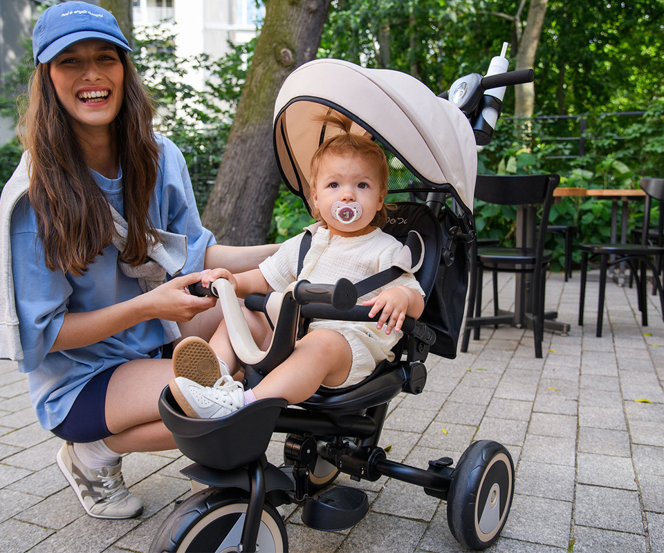 MoMi IVI 5301 je idealna izbira za starše, ki iščejo večnamenski tricikel za svoje malčke. Ta tricikel omogoča otrokom, da sedijo obrnjeni proti staršem ali naprej, kar omogoča večjo prilagodljivost in udobje med vožnjo. S teleskopsko potisno palico lahko starši enostavno nadzorujejo tricikel, dokler se otrok ne nauči samostojno poganjati pedal. Poleg tega je tricikel opremljen z nastavljivim sedežem in naslonjalom, kar omogoča, da raste skupaj z vašim otrokom. Priloženi dodatki, kot sta torba in držalo za skodelico, zagotavljajo dodatno praktičnost med vsakodnevno uporabo.