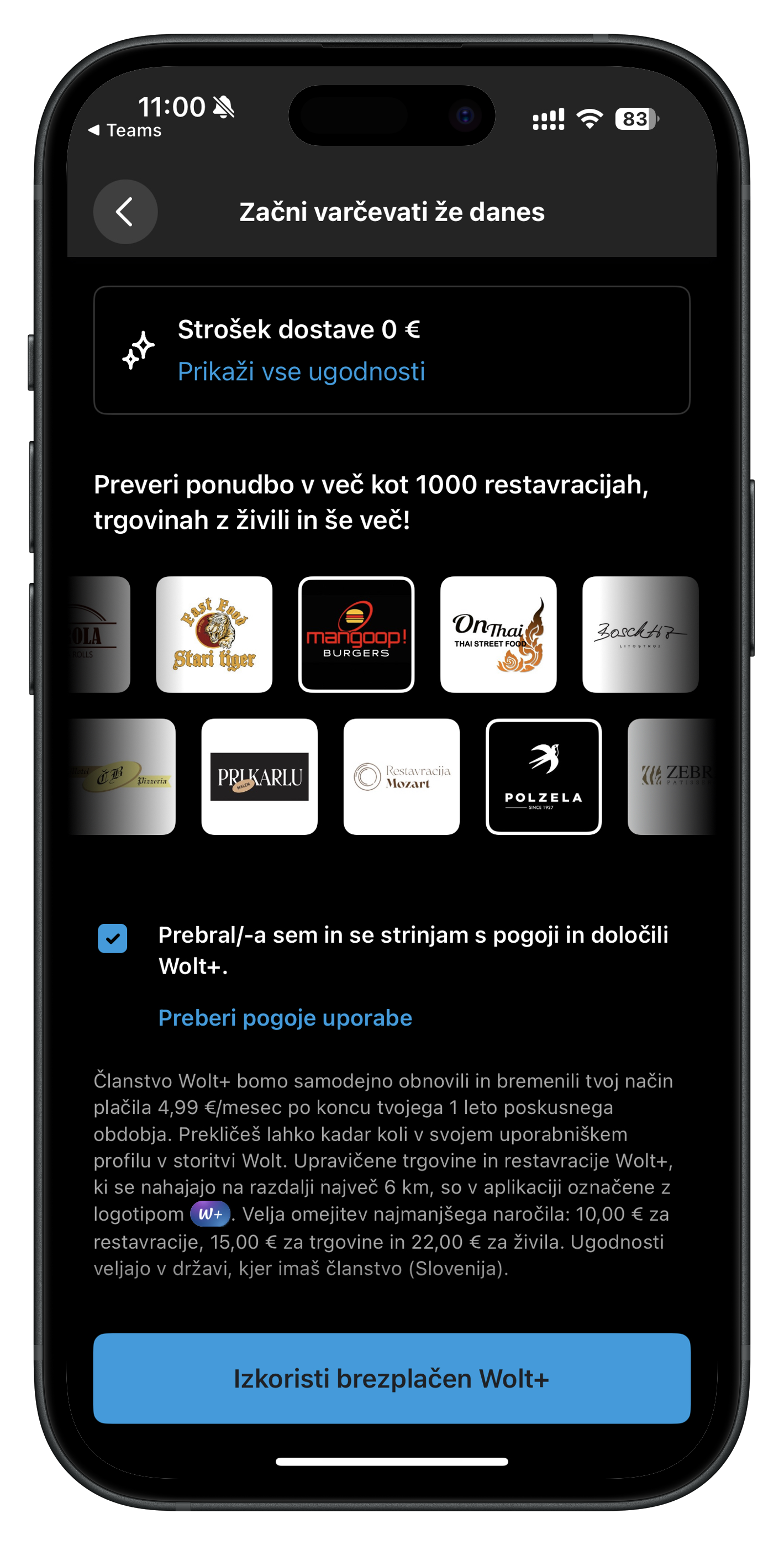 Uspešno si prevzel Wolt+, želimo ti prijetno uporabo!