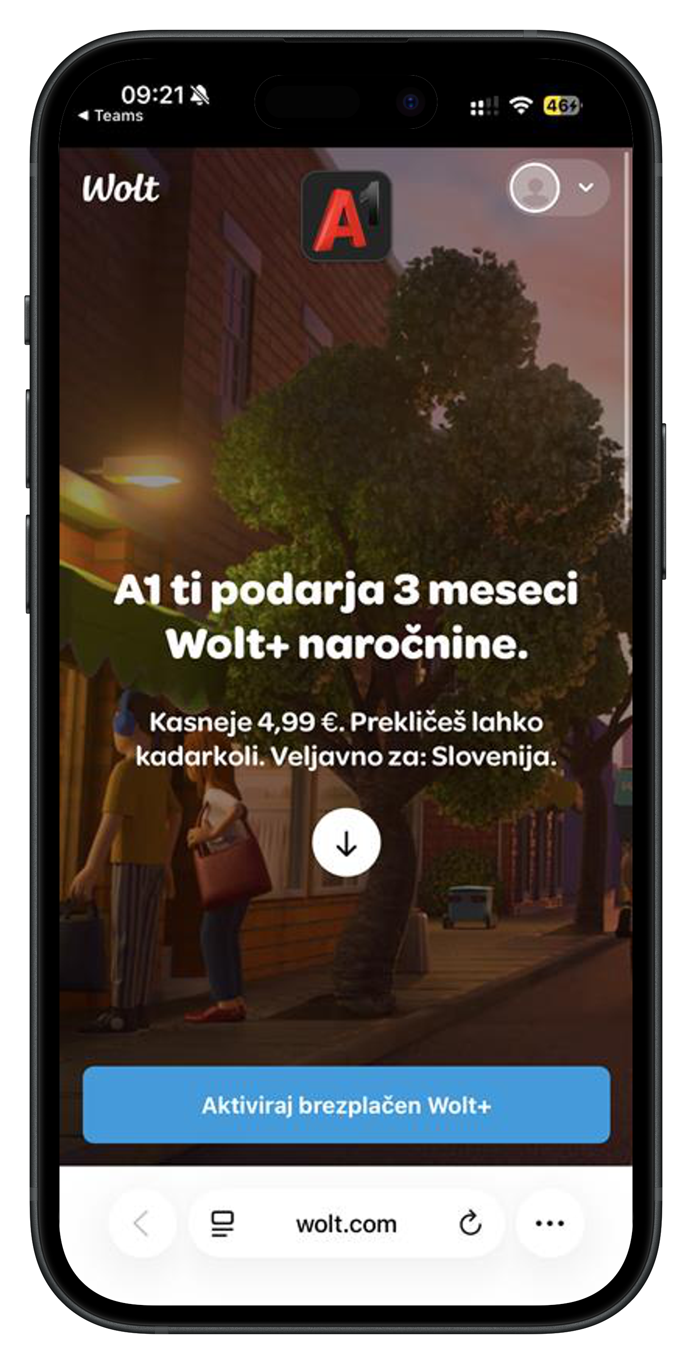Preveri ugodnosti in sprejmi pogoje. Če še nimaš Wolt računa, ga ustvari, sicer zgolj izberi