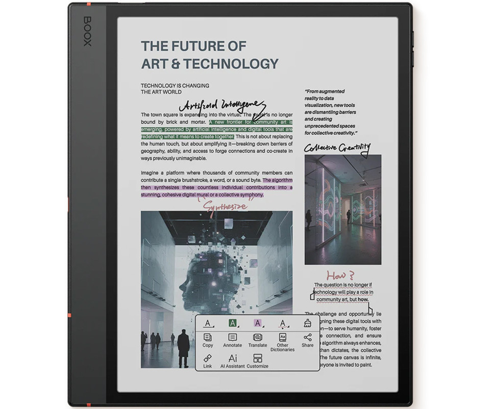Note Air5 C je zasnovan za drzne ustvarjalce, ki iščejo napravo, ki združuje funkcionalnost e-bralnika in tabličnega računalnika. S svojim barvnim zaslonom Kaleido 3 ponuja svetlejše barve in mehkejše odtenke, kar omogoča boljšo vizualno izkušnjo. Napredni 8-jedrni procesor zagotavlja hitro delovanje, medtem ko operacijski sistem Android 15 omogoča dostop do širokega spektra aplikacij. Priloženo magnetno pisalo Pen3 omogoča intuitivno pisanje in risanje, kar je idealno za ustvarjalce, ki želijo svoje ideje prenesti na digitalni papir. Note Air5 C je popolna izbira za tiste, ki želijo več kot le bralnik.